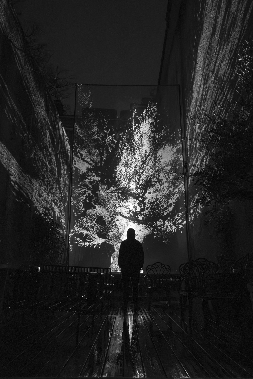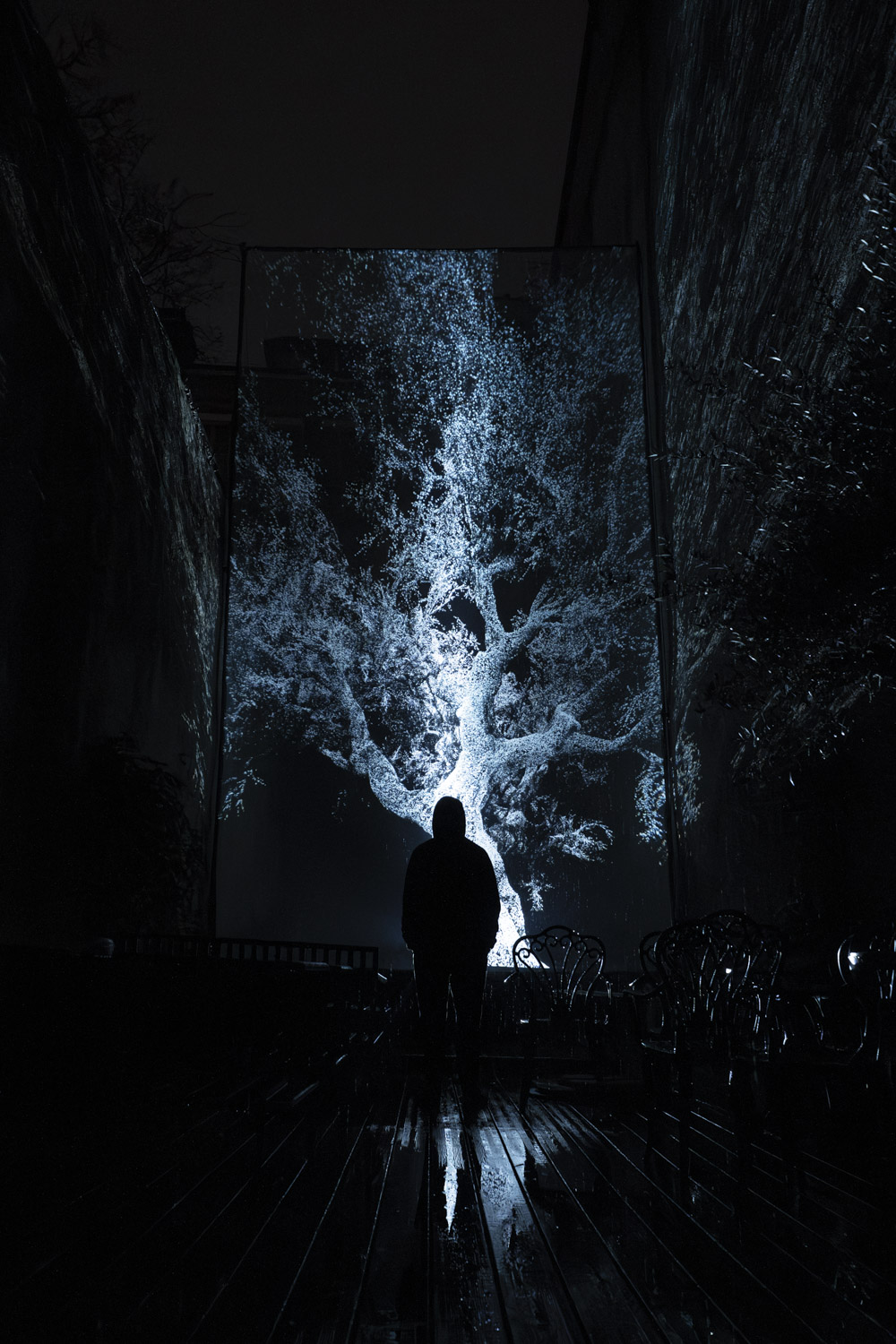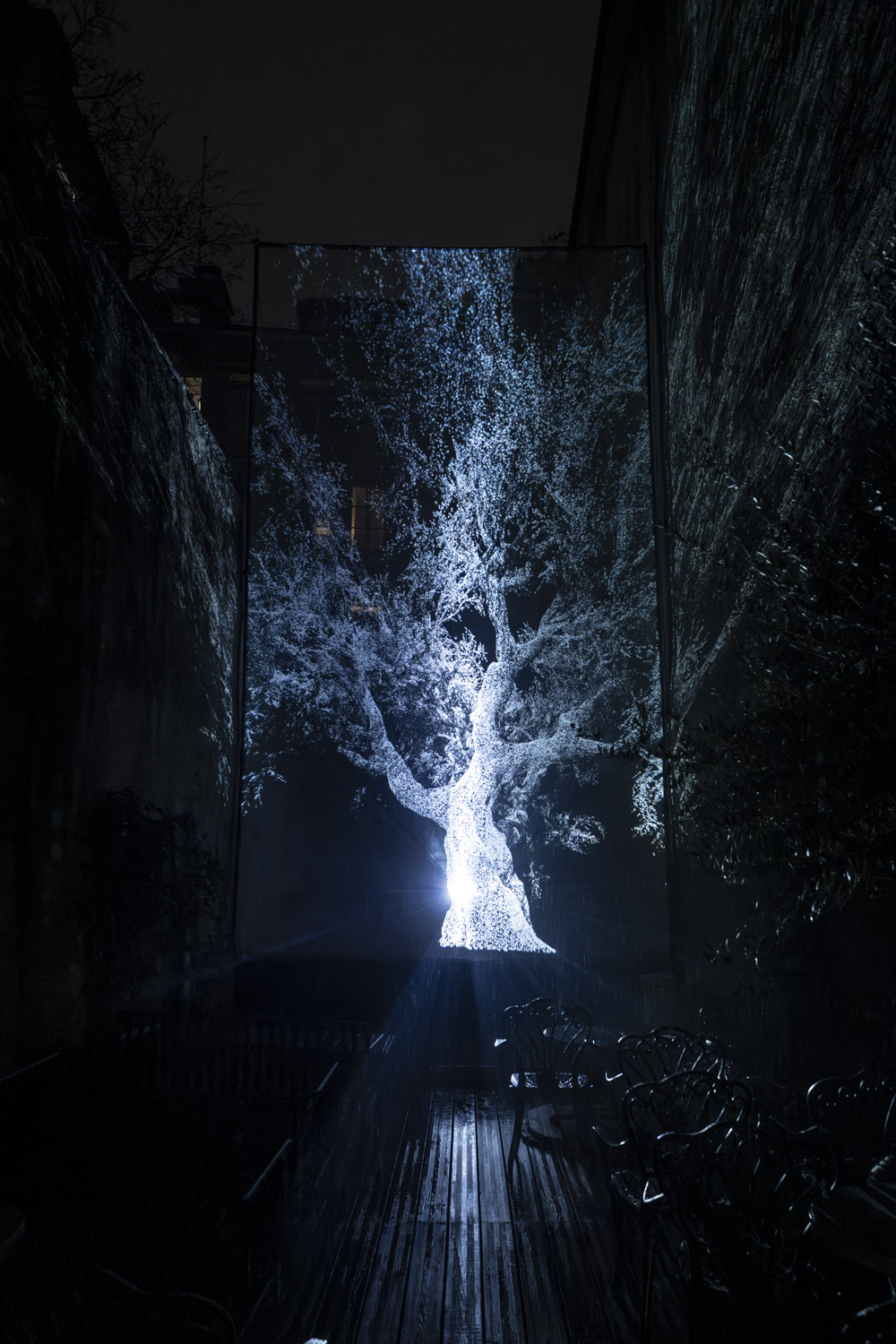 Olae is a site-specific holographic installation that reinterprets the architecture of the courtyard and transforms it into a portal to a procedural world, flying through a virtual Olivier tree and imagined architectures of a new old town.